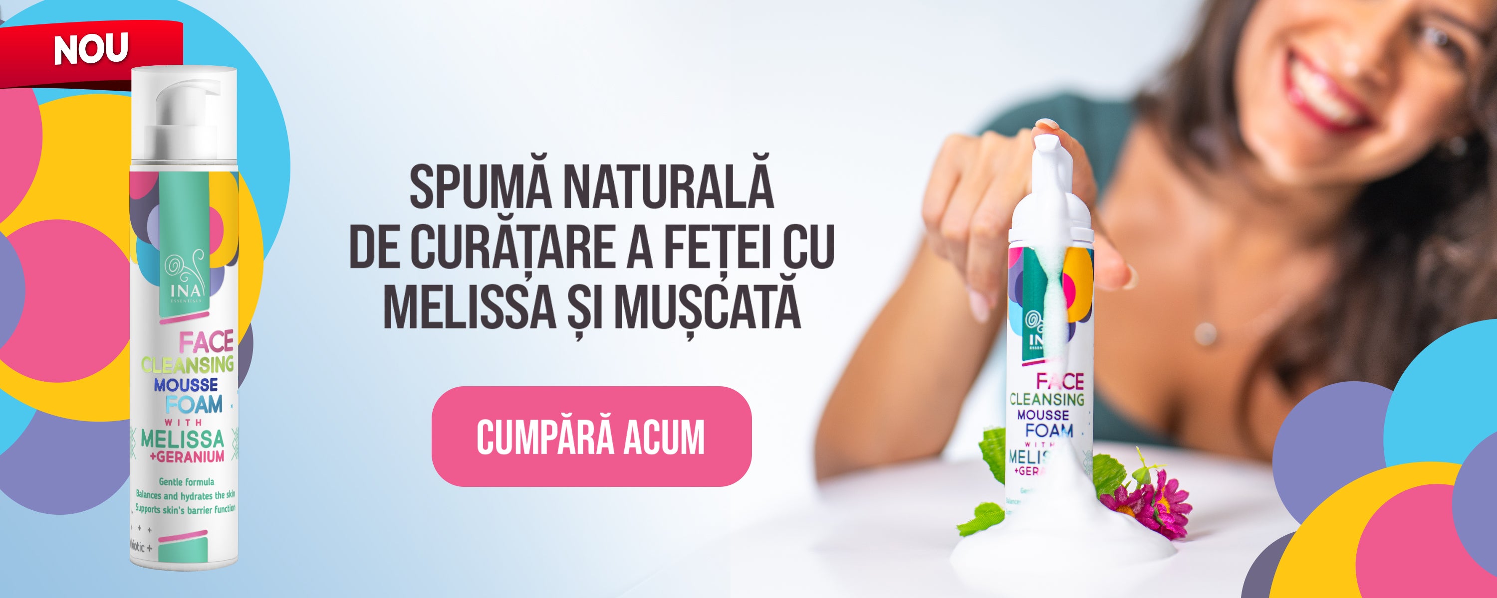 Spumă Naturală de Curățare a feței cu Melissa și Mușcată - pentru toate tipurile de piele