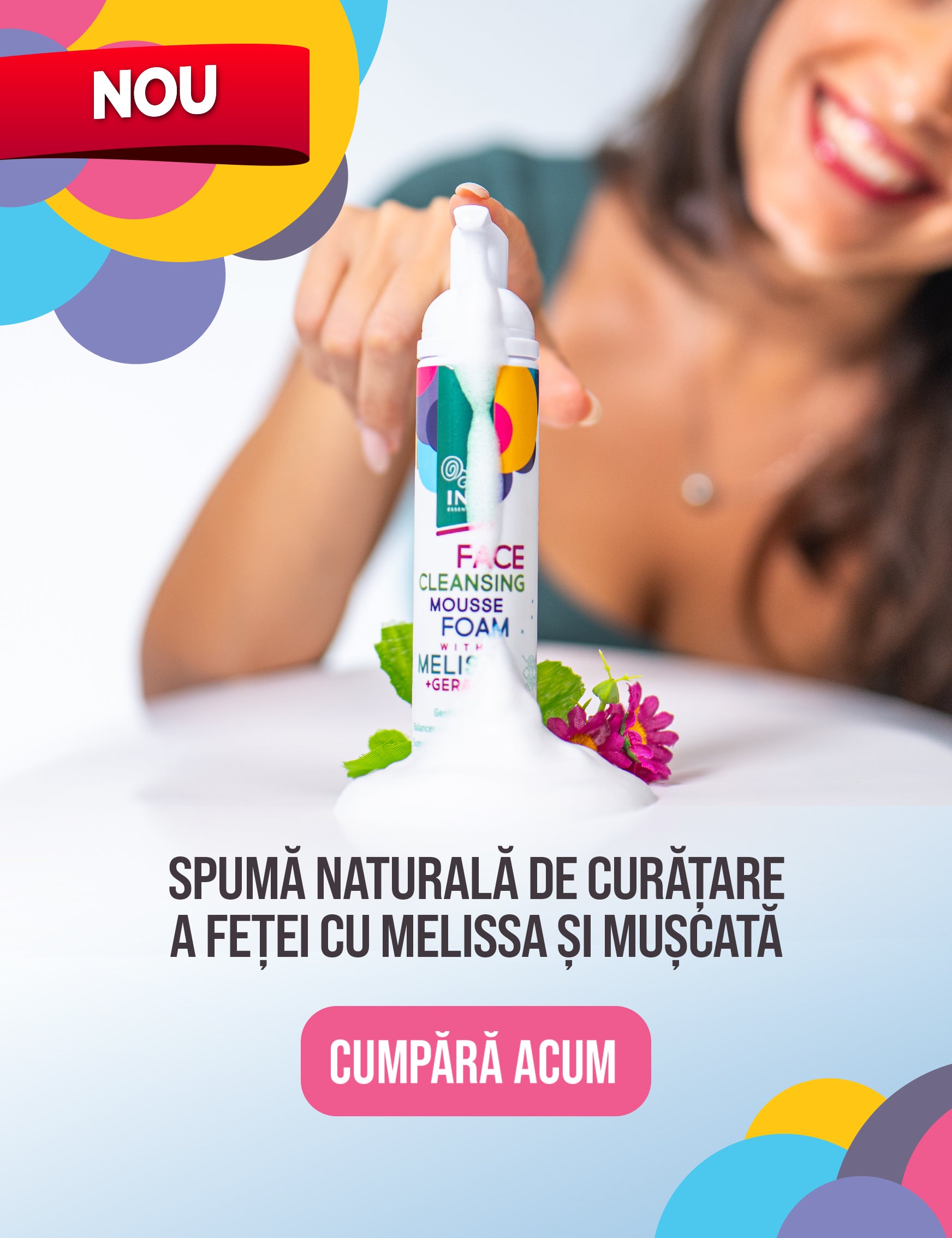 Spumă Naturală de Curățare a feței cu Melissa și Mușcată - pentru toate tipurile de piele