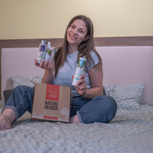 Bucurați-vă de o experiență completă cu produsele InaEssentials. Produsele noastre naturale InaEssentials ajung într-o cutie Nature INA - o cutie de carton reciclată cu design personalizat care transmite istoria și valorile familiei noastre - grija pentru natură și grija pentru tine, clienții noștri.