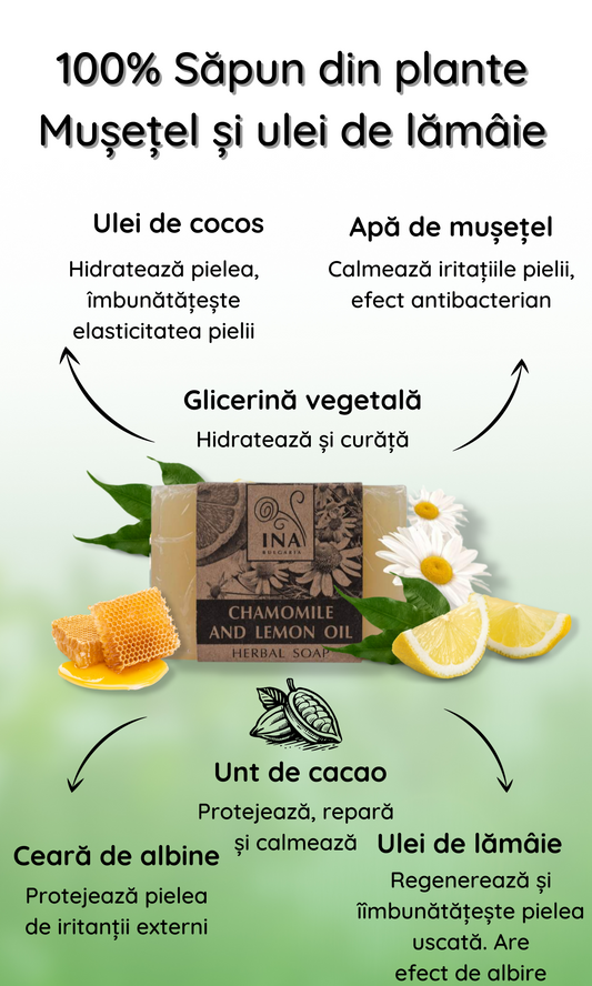 Săpun Natural din Plante cu Mușețel și ulei de Lămâie - efect calmant