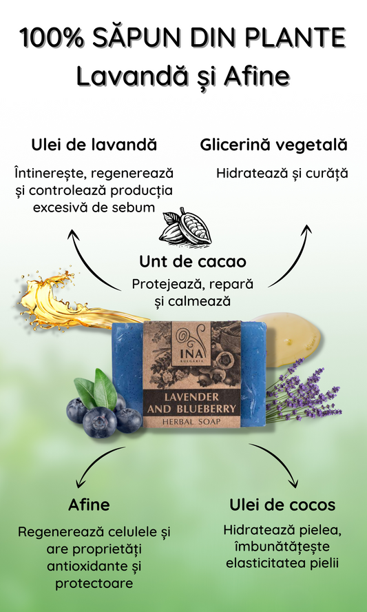 Săpun Natural din Plante cu Lavandă și Afine - corp Acnee și piele predispusă la Pete