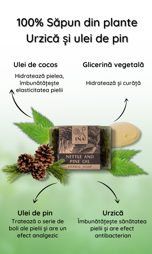 Săpun Natural din Plante cu ulei de Urzică și Pin - acțiune antiinflamatoare