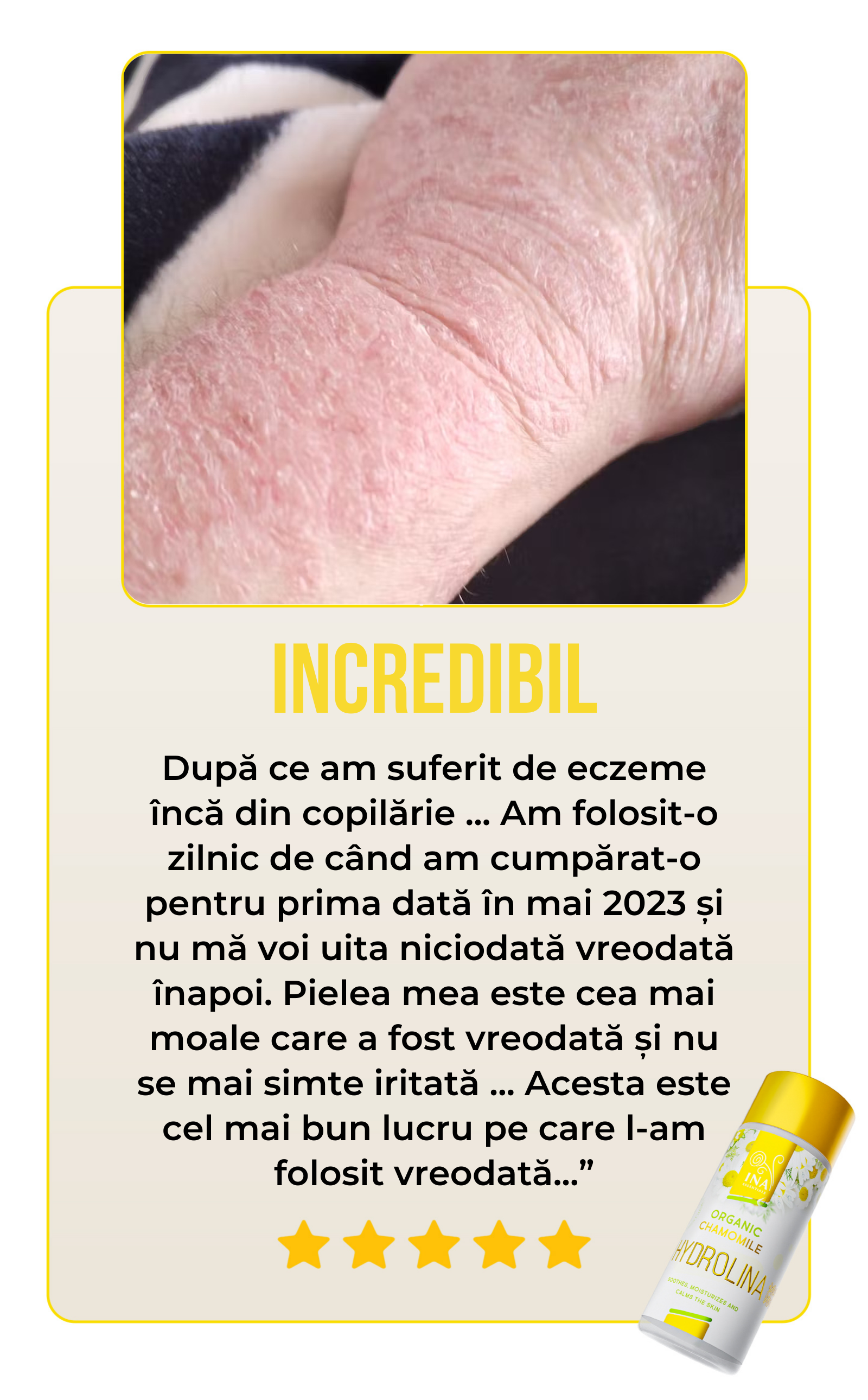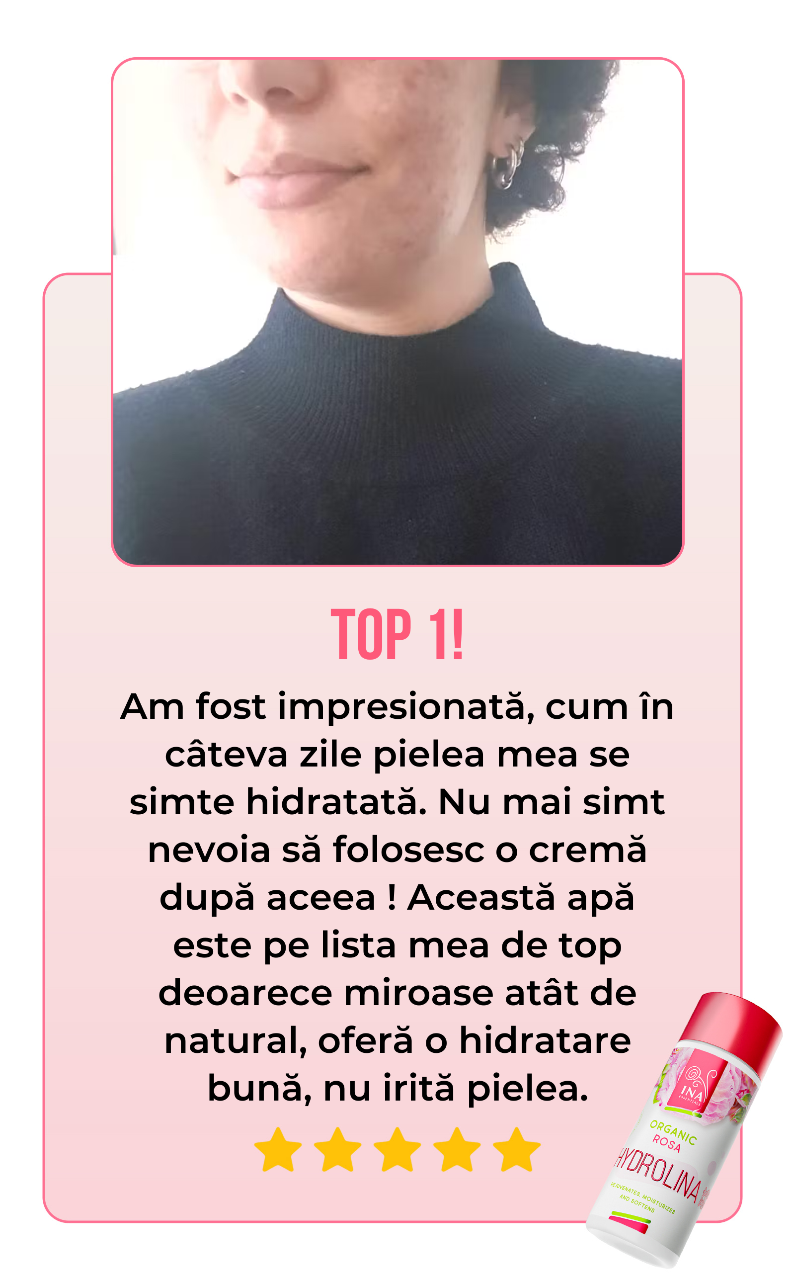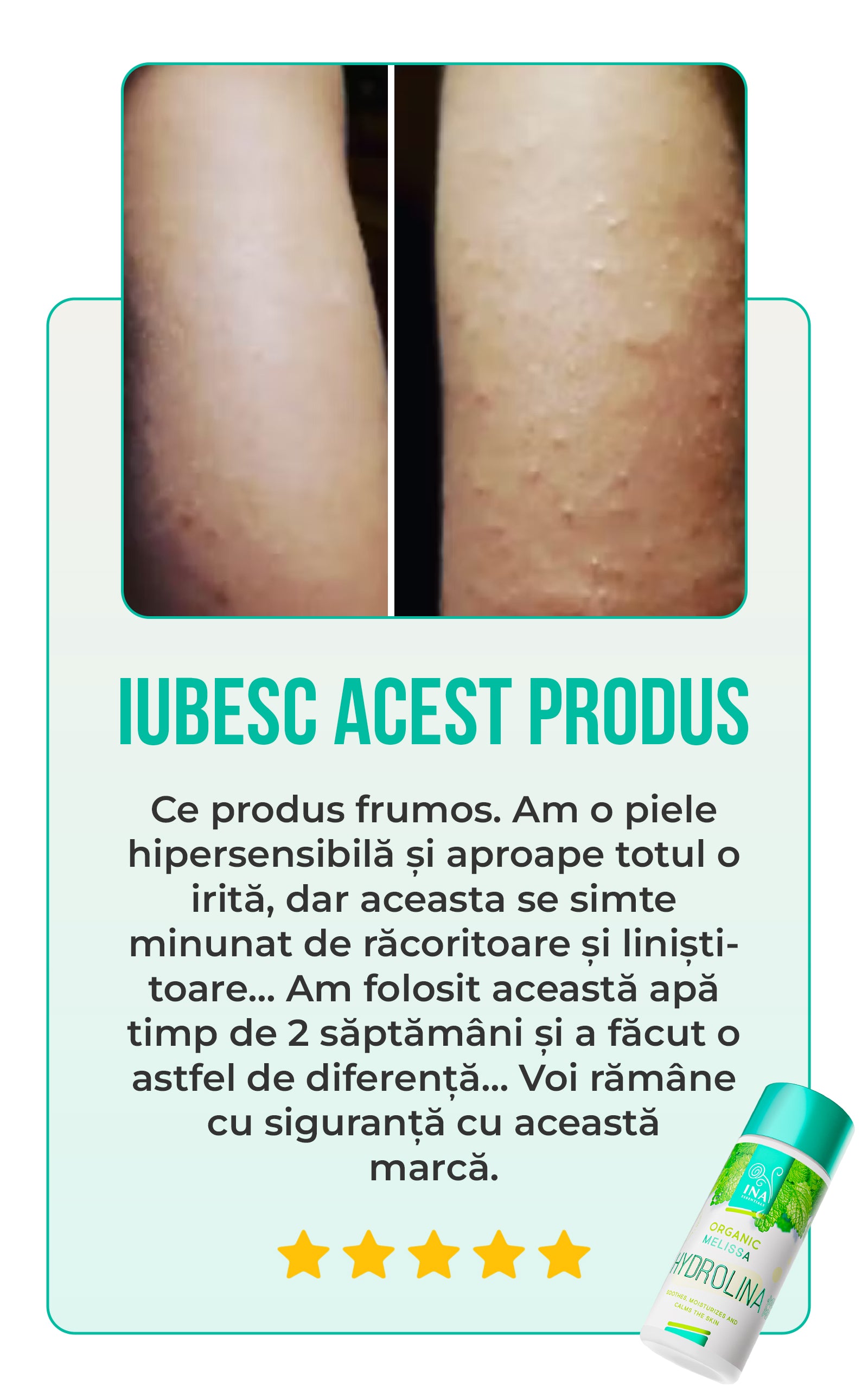 Folosesc apa organica de lavanda Hydrolina de aproape un an si sant foarte multumita Am avut acnee rozacee foarte grava si m-am vindecat cu aceasta apa Multumesc Inaessentials pentru calitatea produselor si Recomand cu incredere Mult succes