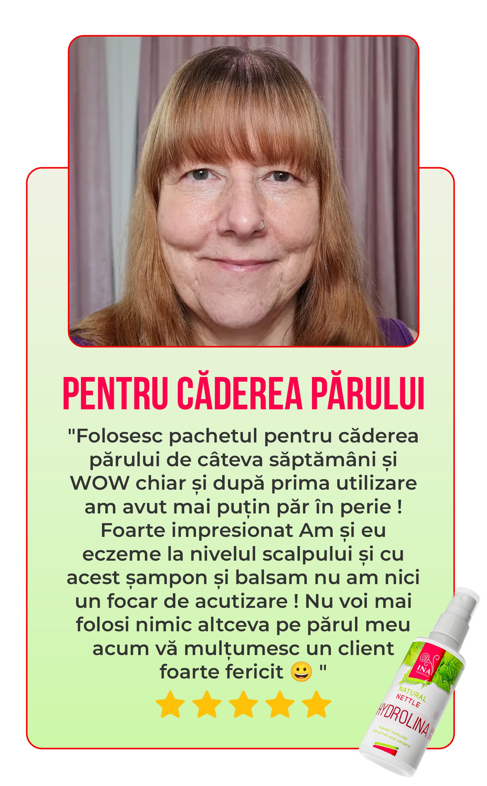 Acum folosesc șamponul cu urzica și balsamul cât și extractul cu urzica și salvie și ma declar super mulțumită, parul nu-mi mai cade....in sfârșit produse care fac ce promit...va mulțumesc și recomand din tot sufletul aceste produse .