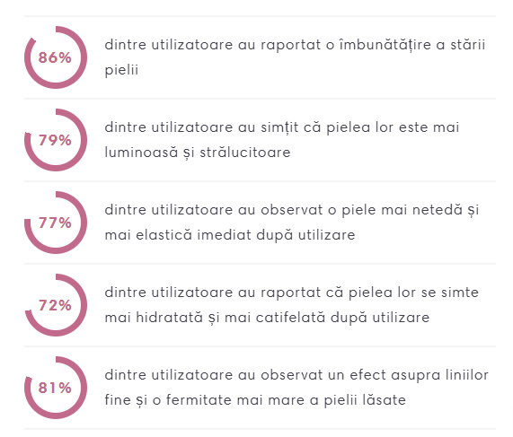 Studiile clinice independente arată îmbunătățiri remarcabile după doar două săptămâni de utilizare regulată. Pielea devine vizibil mai strânsă, mai densă și mai strălucitoare. Fără proceduri costisitoare și o perioadă lungă de recuperare.