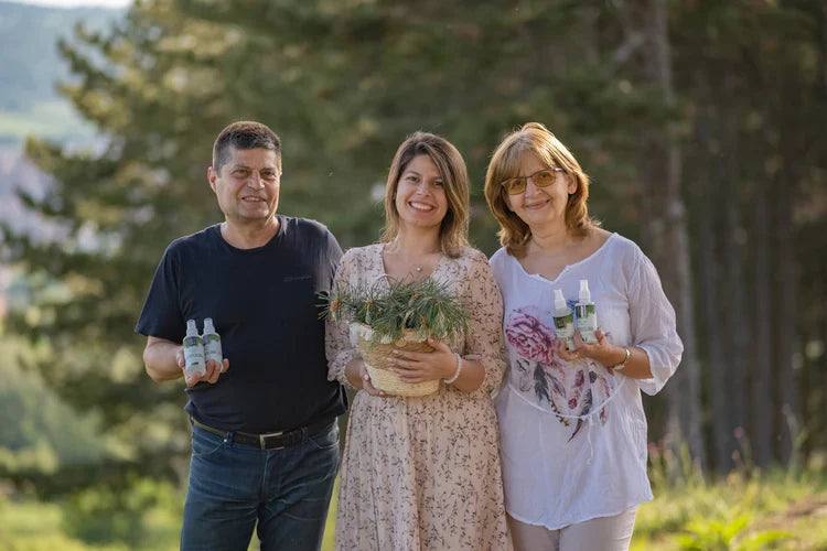 „Copiii noștri îi spun magia pădurii – așa luăm ace de pin proaspete și le transformăm într-o hidrolină limpede, cu o putere de vindecare uimitoare.”